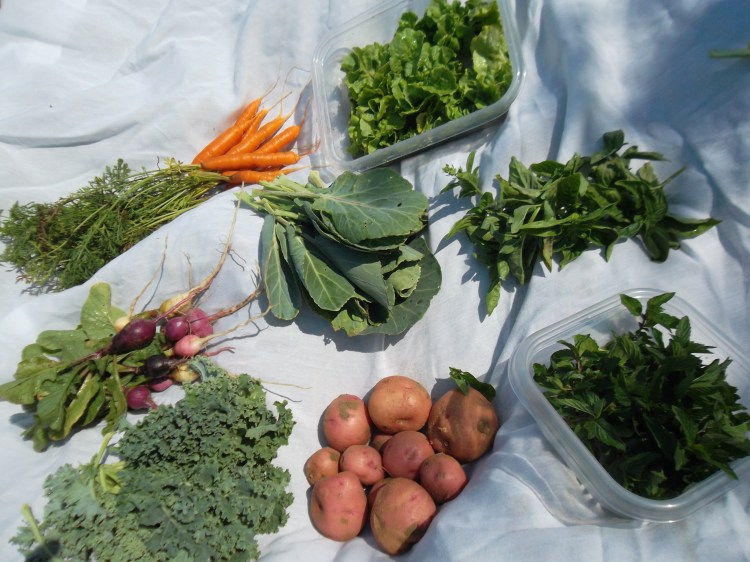 Some photos from the farm and of some of the veggies picked for meals at home. the past few days the rain has been very kind . the next two weeks there will be lots of potatoes available. the pinks (which were ‘reds’ but grew paler for me) were by far the best producers.